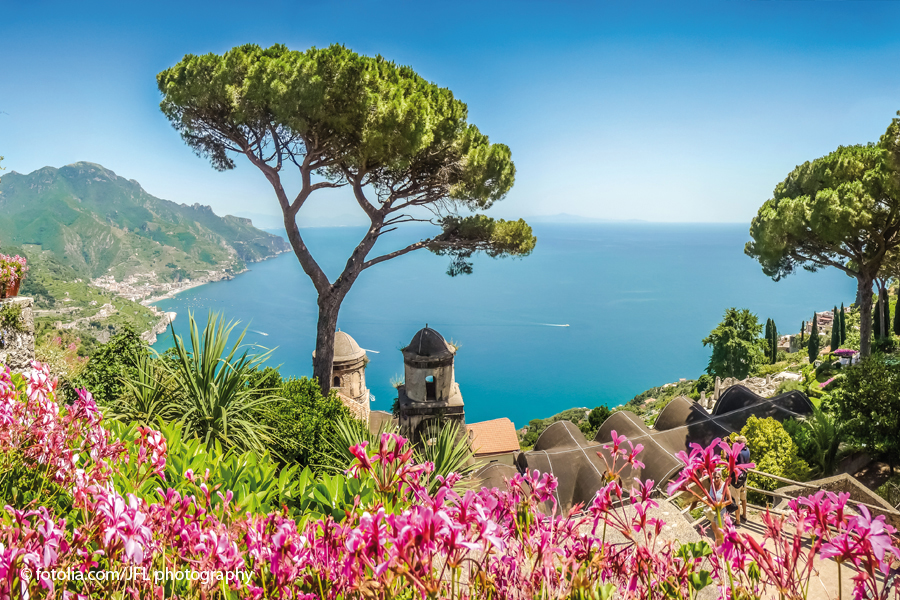 An keinem anderen Ort der Erde leuchten die Farben so anders und so klar wie an der sorrentinischen und amalfitanischen Küste. Die malerischen Orte, die sich an diesem Küstenstrich aneinanderreihen, erscheinen wie Juwelen. Die Halbinsel von Sorrent besticht durch ihre kontrastreiche Natur mit vulkanischen Klippen, Wäldern, Olivenhainen und üppig bewachsenen Hügeln sowie ihre faszinierenden Architekturen und antiken Zeugnisse.