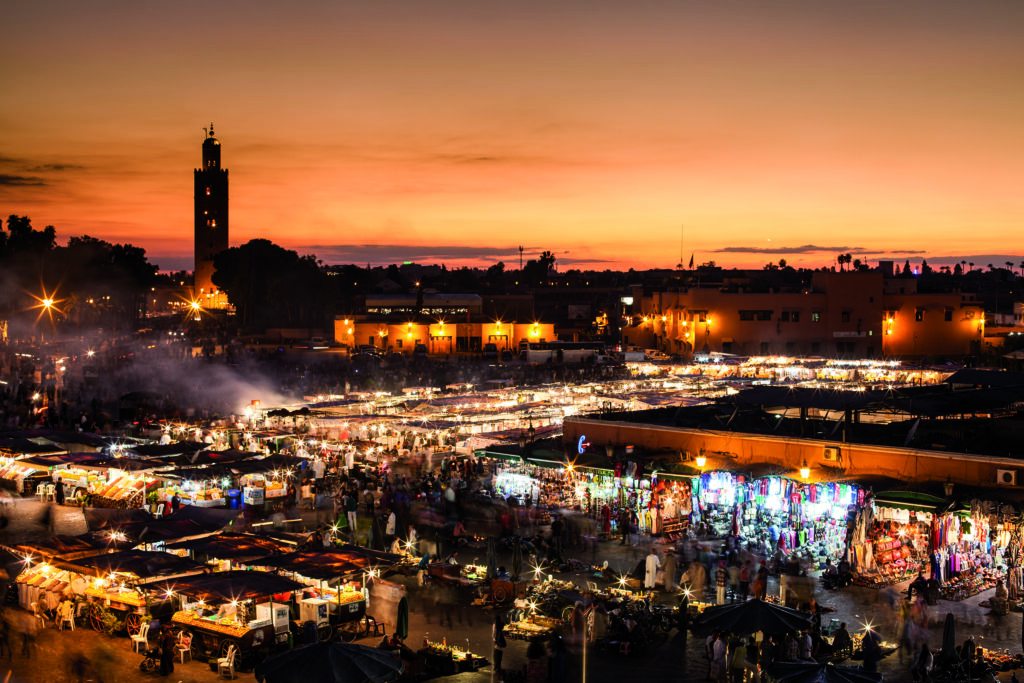 Sie fliegen nach Marrakesch, wo Sie bereits von Ihrer Reiseleitung erwartet werden. Nach der Begrüßung werden Sie zum 5-Sterne-Hotel im Herzen der Königsstadt gebracht. Im Anschluss an die Zimmerbelegung besuchen Sie den zentralen Marktplatz im historischen Stadtkern. Der legendäre Djemaa el Fna begeistert durch seine orientalische Atmosphäre, die von den Darbietungen der Schlangenbeschwörer, Akrobaten, Musikanten und Märchenerzähler geprägt ist. Von der Terrasse des Café «de France» oder des Café «Glacier», wo Ihnen ein Glas typischer Minztee serviert wird, eröffnet sich Ihnen zum Abschluss ein herrlicher Blick über den weitläufigen Platz. Beim gemeinsamen Abendessen im Hotel lassen Sie den Tag ausklingen.